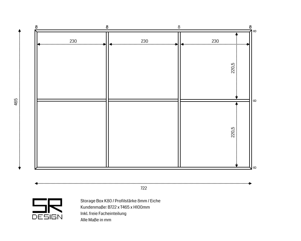 Produktinformationen "Storage Box K80 mit Boden. Inkl. freie Facheinteilung. Eiche."