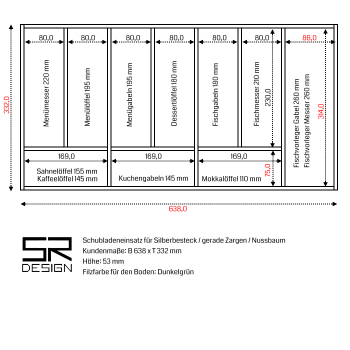Kundenbewertungen für "Schubladeneinsatz für Speisebesteck aus Silber. Mit Griffmulde. Einzelanfertigung. Nussbaum."